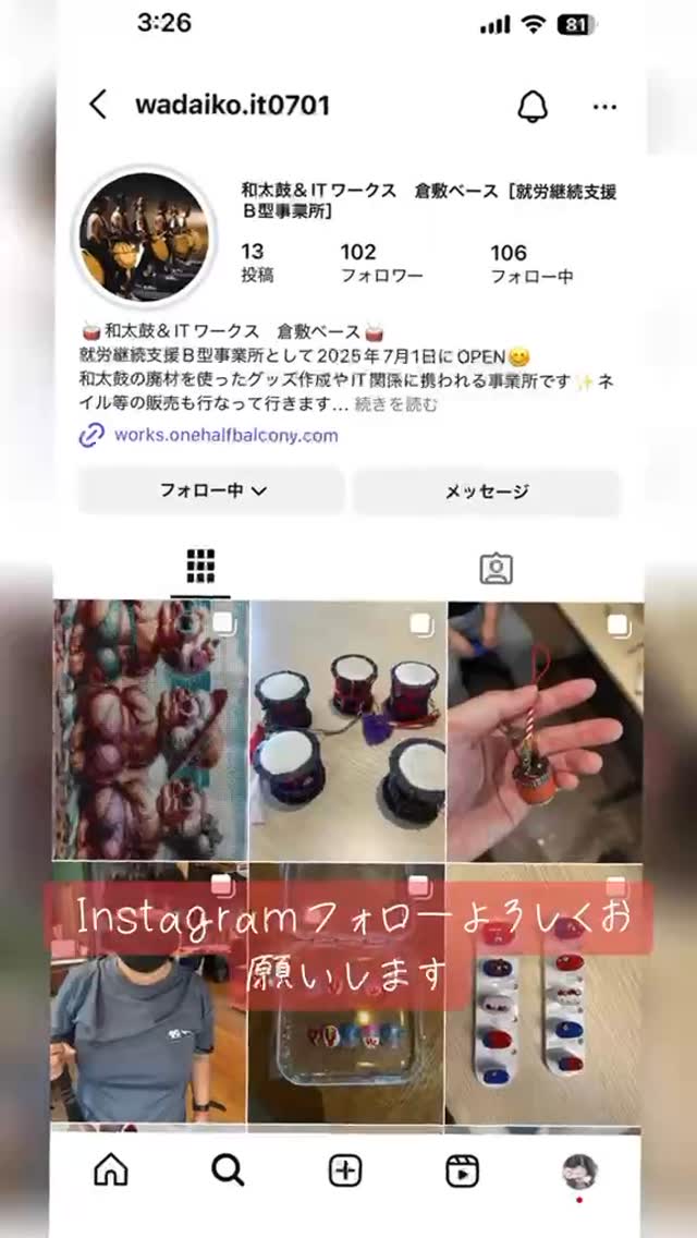 こんにちは♪和太鼓&ITワークス倉敷ベースです😊